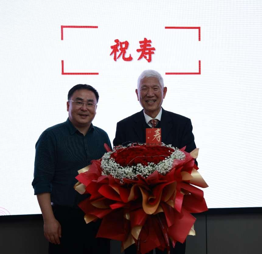 在随后的交流环节,大家向吴岳添教授送上了精心准备的鲜花与礼物,来自谈球吧和文学与新闻公司的青年教师们纷纷发言,回忆与吴岳添教授的交往情景,感谢吴岳添教授的关心与呵护,向吴岳添教授表达由衷的感激和诚挚的祝愿。
