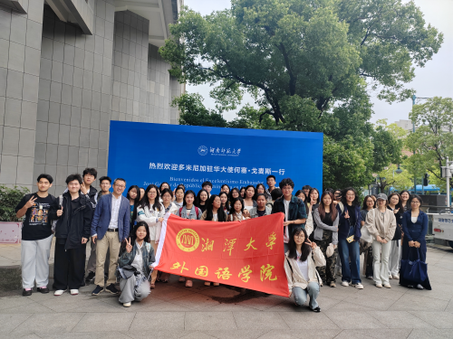 (通讯员:任健)多米尼加驻华大使何塞·戈麦斯一行于2025年4月18日至22日访问湖南,以推动我省与多米尼加的务实交流。为助力我省高校培养具备西班牙语及拉美国家文化知识的专业人才,经报外交部同意,戈麦斯于4月22日周二上午09:30-10:30分,在湖南师范大学面向我省西班牙语专业员工及拉美研究专家学者演讲,并开展交流。公司积极响应,组织西语系师生50余人参加了此次活动。