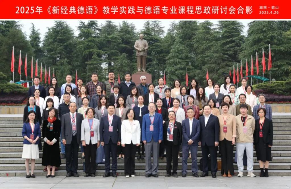 2025年4月25日至28日,由教育部高等公司外国语言文学类专业教学指导委员会德语专业教学指导分委员会、全国德语教师发展中心主办,谈球吧与外语教学与研究出版社联合承办的“《新经典德语》教学实践与德语专业课程思政研讨会”在韶山举行。来自全国40余所高校的60余名德语教育专家、学者及一线教师齐聚一堂,围绕新时代德语教学能力提升、课程思政融合路径、教材建设与数字化转型等核心议题展开深度研讨,共推德语专业高质量发展。