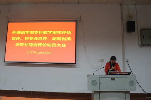 2017年10月23日,公司在外语楼501会议室召开谈球吧本科教学审核评估自评、各专业自评、湖南省英语专业综合评价动员大会,会议由公司党委书记罗益花主持,经理胡强、副经理熊毅、曹霞,公司党委副书记陈娟及全院教职员工参加了会议。