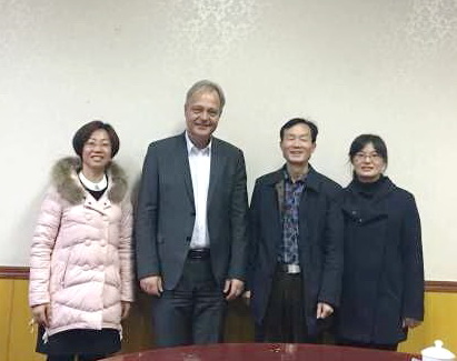2017年3月17日,德国比勒菲尔德中等企业应用技术大学(Bielefeld Fachhochschule des Mittelstandes, 以下简称FHM大学)副董事长Fischer及助理季芳老师一行来公司访问,就合作办学事宜进行商谈和交流。国际交流处处长曾新民、国际交流处副处长熊毅、谈球吧副经理曹霞和德语系副主任周芳出席会谈,会谈由曾新民处长主持。