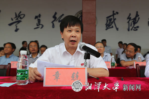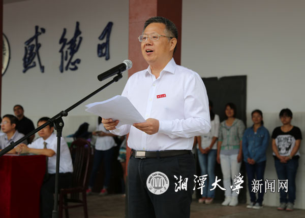 教师代表、化工公司张俊丰教授,老生代表、2014级中共党史专业博士生谭诗杰,新生代表、2015级日语班纪林肯先后发言,言语间洋溢着浓厚的湘大情结,表达了学习生活的感悟和追逐梦想的决心。