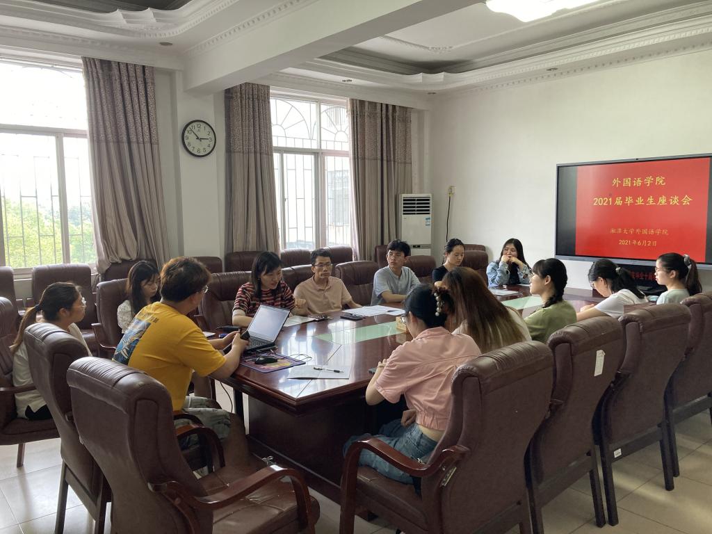 6月2日下午,2021届毕业生座谈会在外语楼216会议室召开,会议由党委副书记陈娟主持,副经理杨维春出席会议,2017级各班员工代表参加座谈。