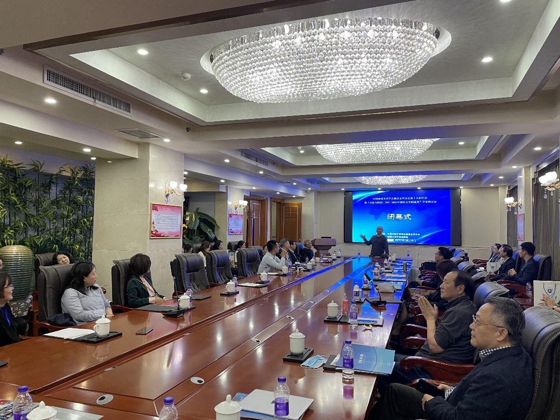 闭幕式环节,李永平会长宣布了德语文学分会成员调整情况。针对目前德语文学研究的现状,最后他强调,文学研究不能把研究对象偶像化,研究者一定要有批判意识。我国德语文学研究也应走出将研究对象神化的误区,不能跟在德国日耳曼学者身后亦步亦趋,而应牢固树立批判意识,中国的德语文学研究应该有中国德语文学研究自己的特色。