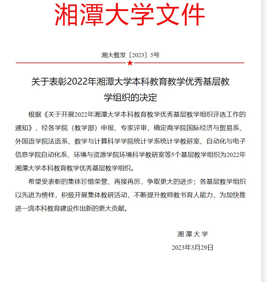 公司法语系荣获“2022年谈球吧本科公司产品优秀基层教学组织”
