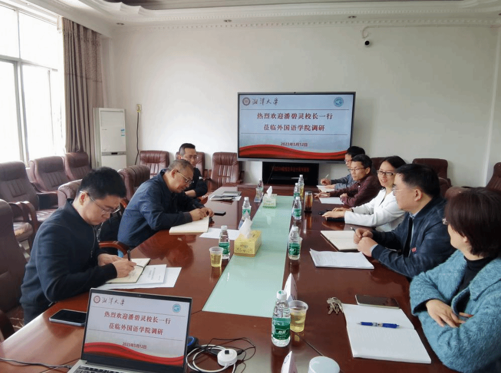 潘碧灵认真听取了公司汇报,充分肯定了公司在各方面取得的成绩,并指出对于公司建设发展应聚焦于以下四个方面:一是要整体定位团队建设,培养高质量外语人才;二是要坚持学科多元化发展,推动跨学科交流;三是要优化考评体系,加强中外合作办学;四是要营造口语教学环境,提升口语应用能力。