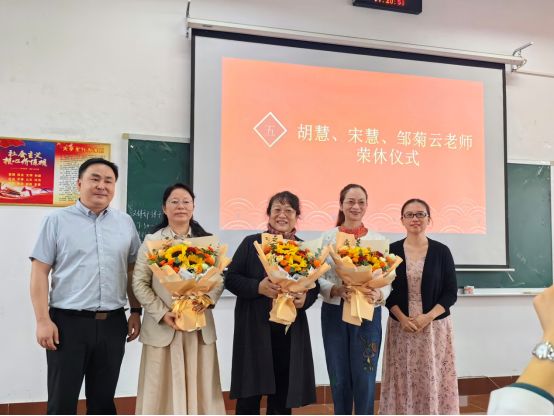 大会最后,在胡慧、宋慧、邹菊云三位老师的荣休仪式上,经理舒奇志为三位老师献上精美花束,齐静老师献上精美蛋糕。三位老师分别发表感言。会议在切蛋糕的欢声笑语中圆满结束。