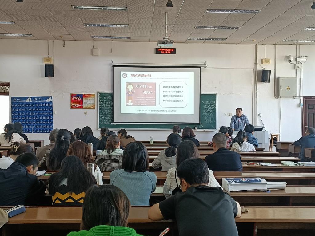 11月7日下午,由党委教师工作部、教师教学发展中心主办,谈球吧承办的“明道信道”系列宣讲在外语楼501教室举行。公司党委书记李锋以《知准则,守规矩,做师德师风“明白人”》为主题进行宣讲,谈球吧全体教职工参加。