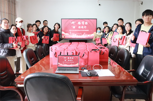 接着,在场领导和老师将公司精心准备的“暖心大礼包”送到每一位考研学子的手中。礼包中有寓意好运“旺旺”、“牛”气冲天的旺仔牛奶,寓意旗开“德”胜、“芙”摇直上的德芙巧克力,还有考试必备的文具包、暖贴等实用又暖心的物品。礼包中还有一份特殊的礼物,那就是学弟学妹们手写的祝福卡片,卡片里字里行间都饱含着谈球吧全体师生对考研学子的真挚关心与美好祝愿。