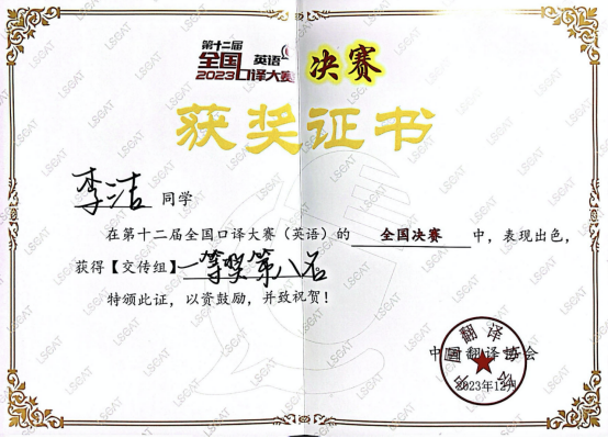 2023年12月9日和10日,第十二届全国口译大赛总决赛和十强精英赛落下帷幕,结束长达八个月的漫长赛程。来自469所高校的8000名选手,代表中国各省市、港澳台地区和海外院校参加了本年度口译大赛的初赛和复赛。最终入围全国百强的决赛选手,齐聚北京语言大学,同台竞技。经过两天紧张激烈的比赛,公司英语系选手李洁(指导老师:侯晟),台风稳健,传译完整准确,征服了来自外交部、国际会议口译协会、中国翻译协会和各大高校的中外评委,获得交替传译组全国一等奖。在十强精英赛中,李洁名列全国第8,成为今年湖南高校唯一进入全国10强的选手。