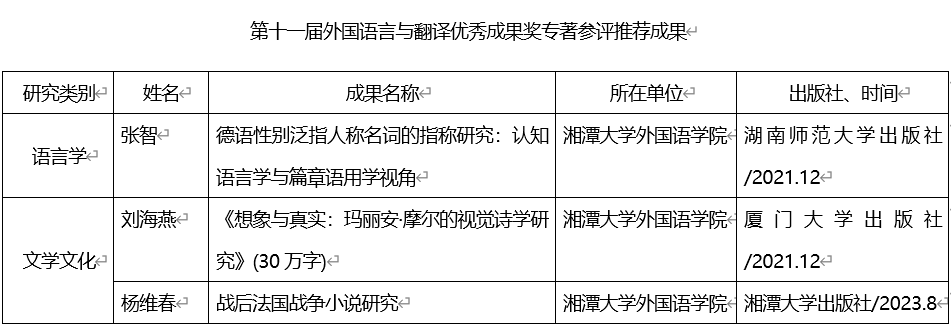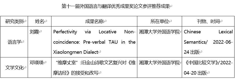 谈球吧第十一届外国语言与翻译优秀成果奖参评成果推荐结果公示