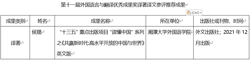 根据湖南省翻译工作者协会第十一届外国语言与翻译优秀成果征集的工作通知,
